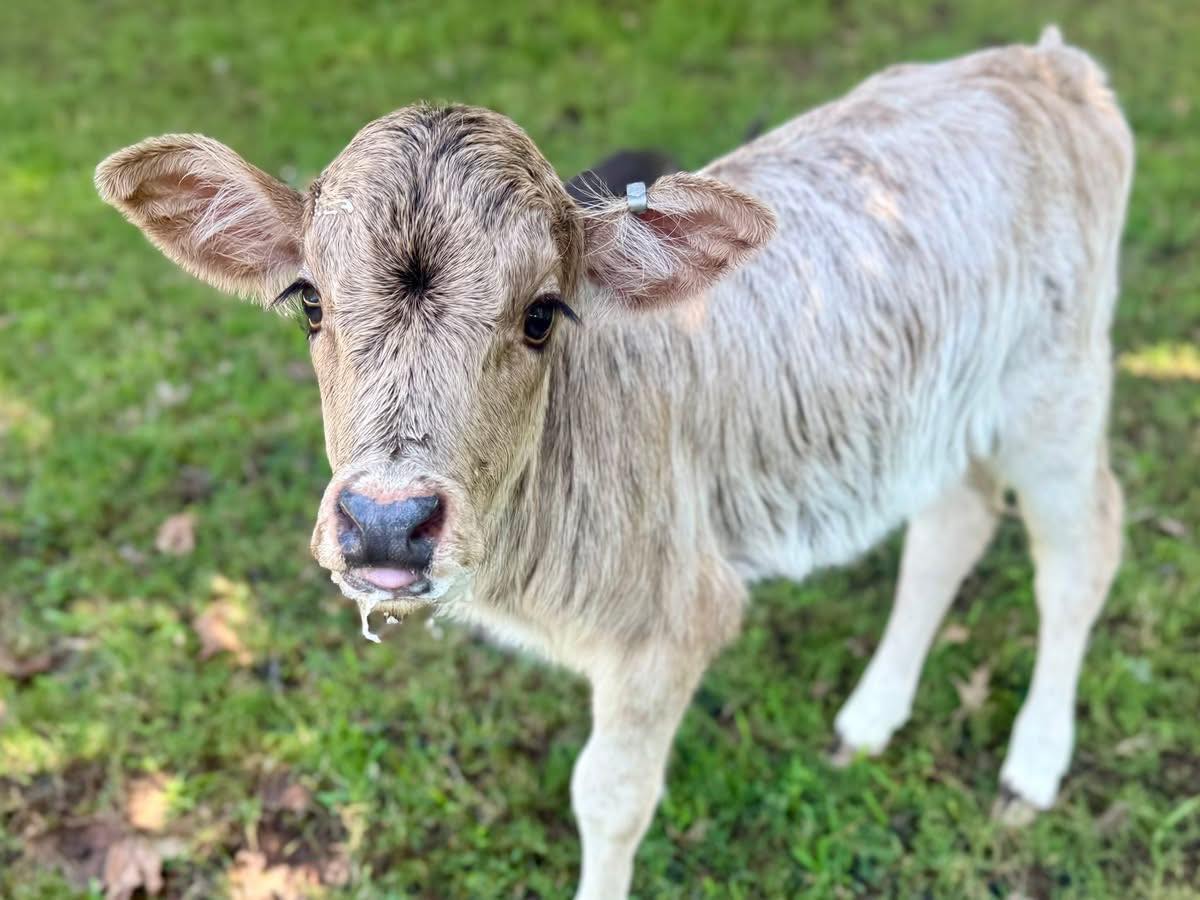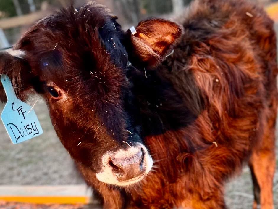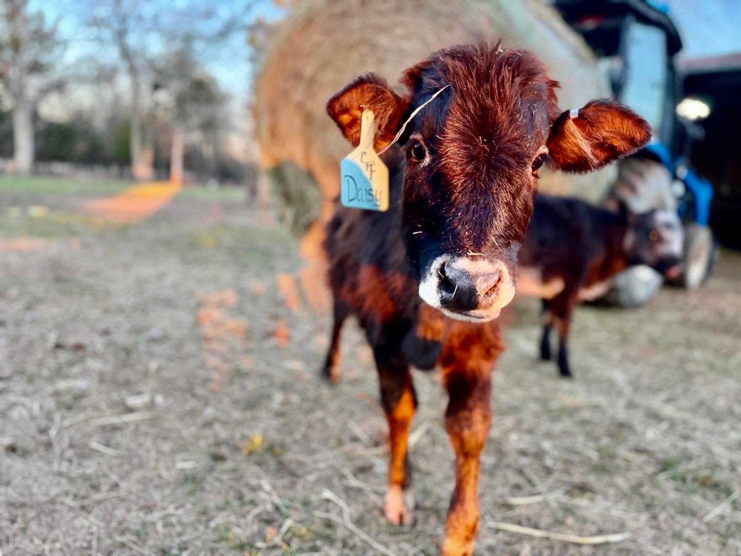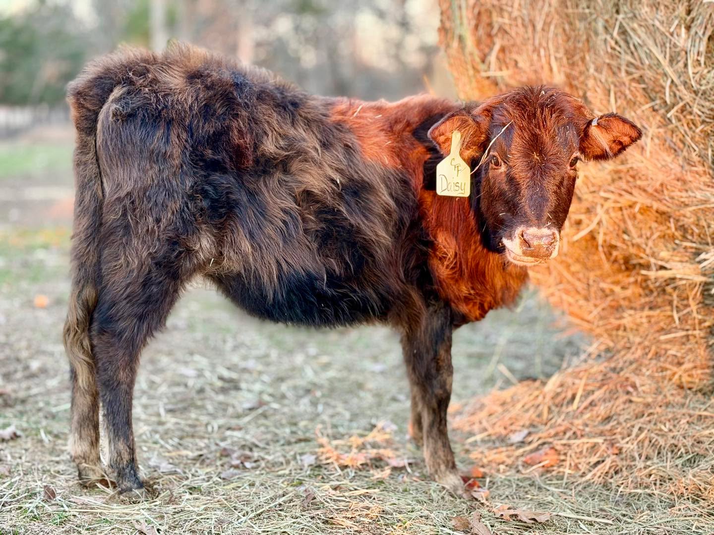 She is a micro mini Highland cross heifer whose Highland coat has continued to come in darker and brindle, getting fluffier as she matures.